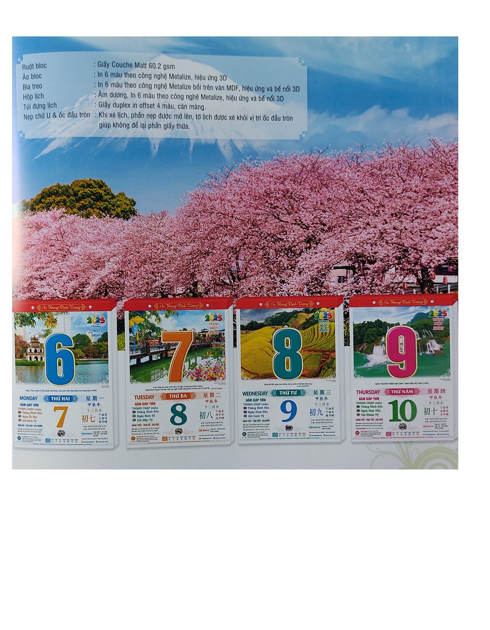 Hộp Lịch Âm dương, In 6 màu theo công nghệ Metalize, hiệu ứng và bế nổi 3D