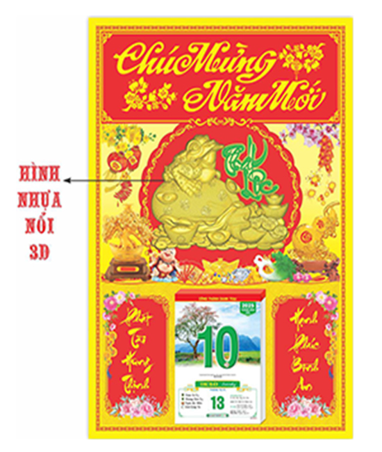 Bộ Lịch Bloc Đại(2025) + Bìa Đại Ván Ép In Metaline Size 40 X 60cm . DÁN CHỮ NHỰA 3D - Phong Thuỷ Đón Xuân HBT176