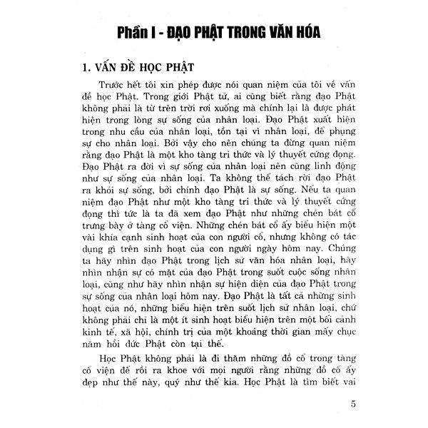 "Nhân loại hiện giờ đang đau khổ vì cố chấp, vì riêng rẽ, vì tị hiềm, vì chủng tộc, vì đảng phái, vì địa phương, vì nhân ngã. Văn hóa nhân loại phải đi về tinh thần tổng hợp để phụng sự nhân loại. Đạo Phật với tâm niệm từ bi, với thái độ cởi mở, với ý nguyện độ sinh có thể có đủ phong độ và điều kiện để đứng ra cùng với những tư trào trọng đại nhất của kho tàng tri thức nhân loại hiện đại, chủ xướng và lãnh đạo cho cuộc tổng hợp vĩ đại đó của văn hóa nhân loại. Trên niềm thao thức thực hiện ý nguyện ấy, chắc chắn bạn sẽ có những khám phá bất ngờ khi trở về nghiên cứu thực tại Phật giáo qua hai ngàn năm trăm năm lịch sử…".