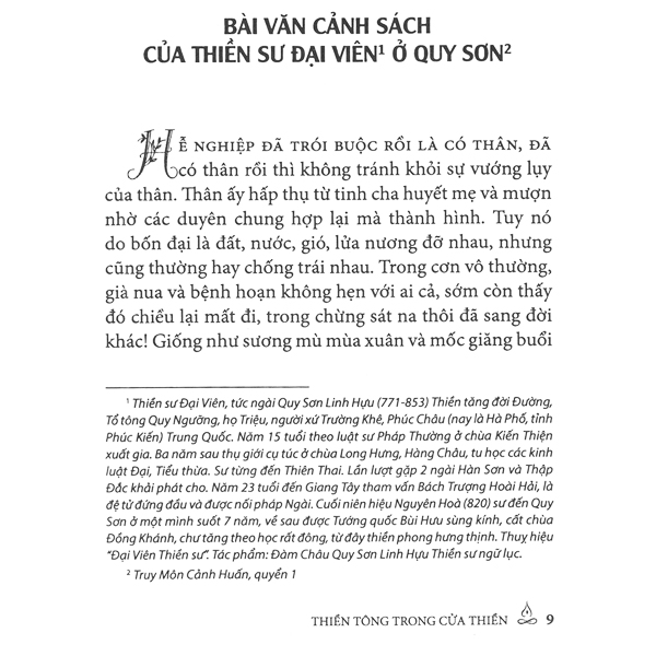 Sách được chuyển dịch từ nguyên bản chữ Hán "Truy môn cảnh huấn", được xếp vào Đại Chánh tạng thuộc tập 48, kinh số 2023, gồm cả thảy 10 quyển, nội dung răn nhắc, cảnh tỉnh sự tu tập của người xuất gia.