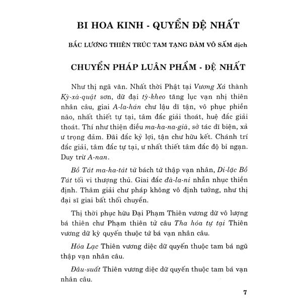 "Như thị ngã văn. Nhất thờ Phật tại Vương Xá thành Kỳ-xá-quật sơn, dữ đại tỳ-kheo tăng lục vạn nhị thiên nhân câu, giai A-la-hán chư lậu dĩ tận, vô phục phiền não, nhất thiết tự tại, tâm đắc giải thoát, huệ đắc giải thoát. Thí như thiện điều ma-ha-na-già, sở tác dĩ biện, xã ư trọng đảm. Đãi đắc kỷ lợi, tận chư hữu kết. Chánh trí đắc giải, tâm đắc tự tại, ư nhất thiết tâm đắc độ bỉ ngạn. Duy trừ A-nam..."