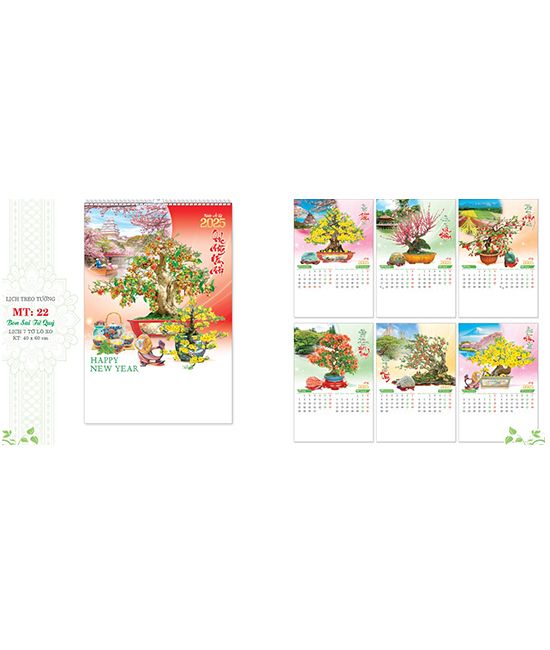 Lịch Lò Xo 7 tờ 2025 - BONSAI TỨ QUÝ ( MT22 )