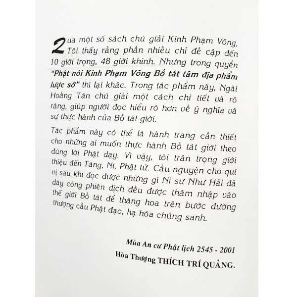 Phật Nói Kinh Phạm Võng Phẩm Bồ Tát Tâm Địa Phẩm Lược Sớ