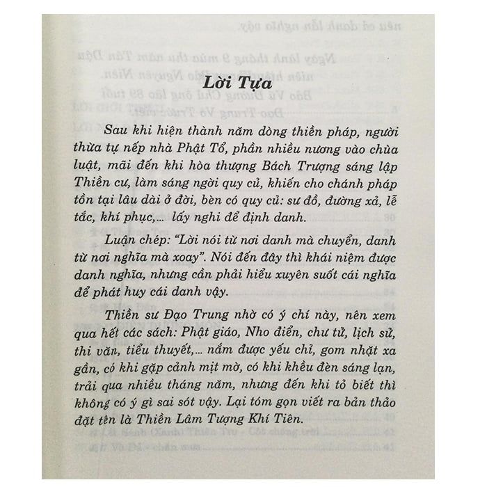 Sách được trích dẫn những điển tịch: trong đó nội điển 484 bộ bao hàm: Kinh, Luật, Luận, Sớ, Tăng Sử, Thiền Đăng Sử, Thi Kệ, Thanh Quy, Thiền Gia Ngữ Lục … và 286 bộ Kinh, Sử, Tử, Tập … thuộc sách ngoại điển Trung Nhật có liên quan đến sự tướng của Phật giáo. Ngoài những điều mục đã soạn thuật, lại còn thêm vào phần khảo chứng, không chỉ giới hạn bởi Tông Lâm Tế, Tào Động … mà xuyên suốt cả những điều thông thường trong một tòng lâm. Đây thật là một bộ sách rất tốt để tham khảo chế độ thiền tông.