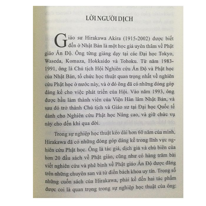 Lịch sử Phật giáo Ấn Độ, tổng kết một đời nghiên cứu về Phật giáo Ấn Độ của Giáo sư Hirakawa Akira, là một cuốn sách vô cùng bao quát về Phật giáo Ấn Độ, với các chương chi tiết về lịch sử, giáo pháp và những nguồn tài liệu tham khảo liên quan.