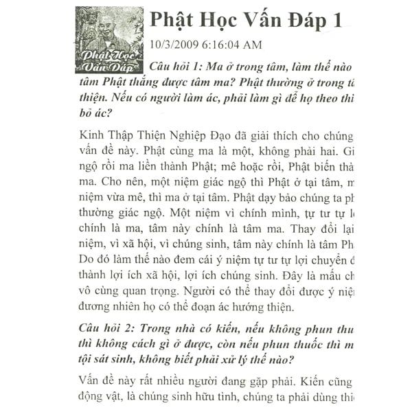 "...Phật cùng ma là một, không phải hai. Giác ngộ rồi ma liền thành Phật; mê hoặc rồi, Phật biến thành ma. Cho nên, một niệm giác ngộ thì Phật ở tại tâm, một niệm vừa mê, thì ma ở tại tâm. Phật dạy bảo chúng ta phải thường giác ngộ. Một niệm vì chính mình, tự tư tự lợi, chính là ma, tâm này chính là tâm ma. Thay đổi lại ý niệm, vì xã hội, vì chúng sinh, tâm này chính là tâm Phật. Do đó làm thế nào đem cái ý niệm tự tư tự lợi chuyển đổi thành lợi ích xã hội, lợi ích chúng sinh. Đây là mấu chốt vô cùng quan trọng. Người có thể thay đổi được ý niệm đương nhiên học có thể đoạn ác hướng thiện..."