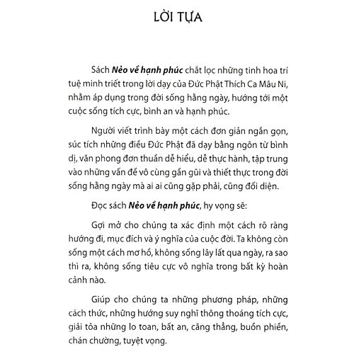 Nẻo về hạnh phúc chắt lọc những tinh hoa trí tuệ trong lời dạy của Đức Phật, nhằm áp dụng trong đời sống hằng ngày, hướng tới một cuộc sống tích cực, bình an và hạnh phúc.