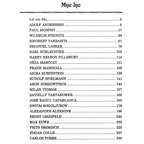 Quyển sách này giới thiệu những ván cờ thực chiến của các đại sư lừng danh thế giới ở thể kỷ 19 và đầu thể kỷ 20. Họ thật sự là những thiển tài cờ vua, tài năng của họ thể hiện qua những ván cờ tinh diệu.