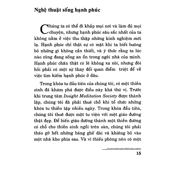 Cũng trong ý nghĩa đó, nội dung tập sách này chính là muốn trình bày với người đọc những điều giản dị và hầu như ai cũng có thể thực hành để đạt được hạnh phúc chân thật trong cuộc sống. Mặc dù vậy, việc có thực hành được hay không chắc chắn là còn tùy nơi nỗ lực tự thân của mỗi người.