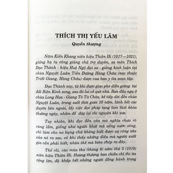 Tác phẩm, 3 quyển, do ngài Đạo thành biên soạnvào năm Thiên hỉ thứ 3 (1019) đời Bắc Tống, được thu vào Đại chính tạng tập 54. Nội dung sách này thu chép các từ ngữ về các khái niệm cơ bản của Phật giáo, về các nghi tắc, pháp qui tự viện, về chế độ tăng quan... rồi trích dẫn nội, ngoại điển để giải thích. Toàn sách gồm 27 thiên, chia làm 679 mục. Quyển thượng gồm 9 thiên: Tính thị(họ), Xưng vị(tên gọi), Cư xứ(chỗ ở), Xuất gia, Sư tư(thầy trò), Thế phát(cạo tóc), Pháp y(áo pháp), Giới pháp và Trung thực(ăn đúng giờ Ngọ). Quyển trung gồm 9 thiên: Lễ số, Đạo cụ, Chế thính (cấm chỉ và cho phép), Úy thận(sợ hãi và thận trọng), Cần giải(Siêng năng và biếng nhác), Tam bảo, Tư hiếu(nghĩ về đạo hiếu), Giới thú(đi tới các cõi) và học tập. Quyển hạ gồm 9 thiên: Thuyết thính(nói và nghe), Tháo tĩnh (động và tĩnh), Tránh nhẫn (tranh cãi và nín nhịn), Nhập chúng(hòa nhập chúng tăng), Trạch hữu(chọn bạn), Trụ trì, Tạp kí(ghi vặt), Chiêm bệnh(xem bệnh) và Tống chung(đưa ma).